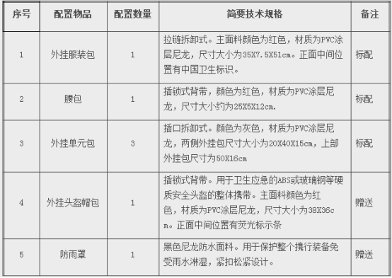 主面料采用國(guó)旗紅色,并符合《衛(wèi)生應(yīng)急毒物個(gè)人攜行裝備技術(shù)規(guī)范(試行)》相關(guān)規(guī)定。內(nèi)部單元包采用綠色,外掛包采用灰色。