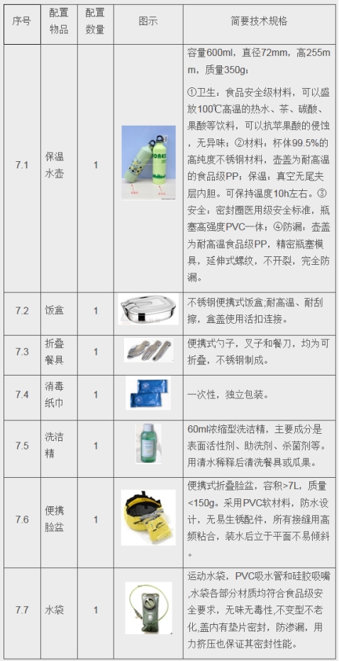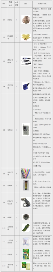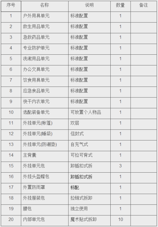 個(gè)人攜行裝備單元配置表