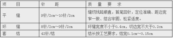 三、縫制工藝要求