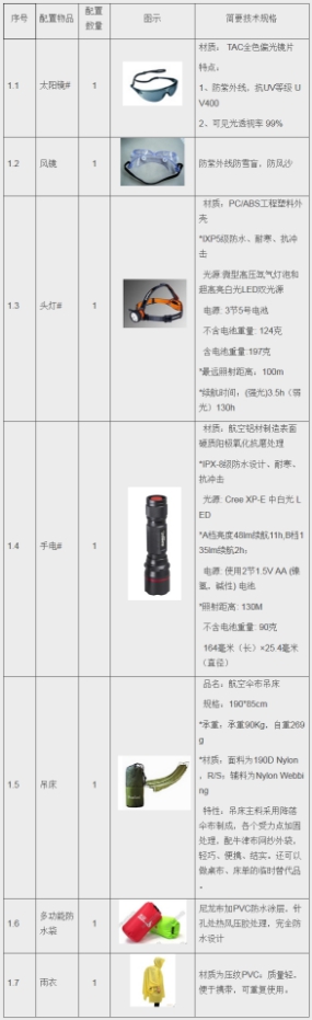 個(gè)人攜行裝備單元配置表